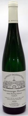 The 2020er Niedermenniger Herrenberg Riesling Kabinett Feinherb Herbert (the reference to this internal cask name is provided in small print on the label after the AP number) comes from 50-60-year-old vines in the Langenberg sector of the vineyard and was fermented down to off-dry levels of residual sugar (24 g/l). It feels quite aromatic, flowery, and even fruity as notes of white flowers, gooseberry, white peach, lime, and anise emerge from the glass. The wine proves nicely juicy and fruity side on the overall rather zesty palate and leaves a gorgeously light-footed feel wrapped into more supple and suave elements in the spicy finish. This off-dry Riesling proves already quite enjoyable but will only reveal its full potential in a few years. 2022-2030 92 points Mosel Fine Wines No 57